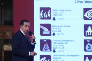 La secretaría presumió una disminución del 21. 6 % anual en los delitos del fuero federal, con 72 mil 017 registrados hasta octubre.