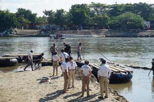 Sobre el paso en Palenque, se pueden ver a hombres y mujeres bajar de las balsas con la finalidad de internarse a Ciudad Hidalgo, Chiapas, pero son interceptados por personal de migración y un elemento de la Guardia Nacional para solicitarle sus papeles.
