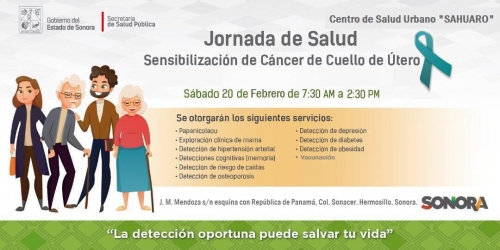 Hermosillo, Sonora; febrero 19 de 2021. Como parte de las acciones para la prevención de enfermedades en la población, se llevará a cabo la Jornada de Salud en el Centro Urbano El Sahuaro, este sábado 20 de febrero, informó Juan Carlos Quintero López.