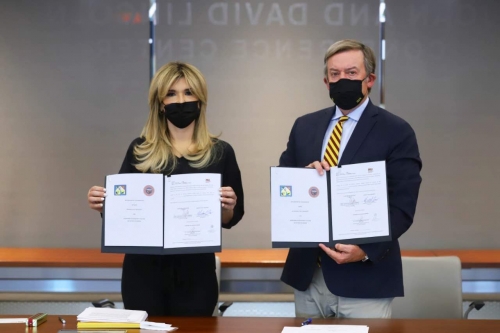 Phoenix, Arizona; mayo 19 de 2021. La colaboración entre las universidades de Arizona y de Sonora se convierte en una ventaja competitiva más de la Megarregión que ambos gobiernos hemos impulsado fuertemente y es ejemplo de la cooperación internacional que ofrece la Comisión Sonora-Arizona, Arizona-México, expresó la gobernadora Claudia Pavlovich Arellano, al firmar como testigo el Memorándum de Entendimiento entre la Secretaría de Educación y Cultura y la Universidad Estatal de Arizona y su presidente, Michael Crow.