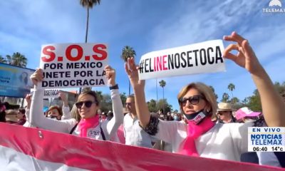 Vestidos de blanco y rosa, ciudadanos que se identifican con el movimiento SOS por México, marcharon pacíficamente desde la Plaza Emiliana de Zubeldía hasta la zona...